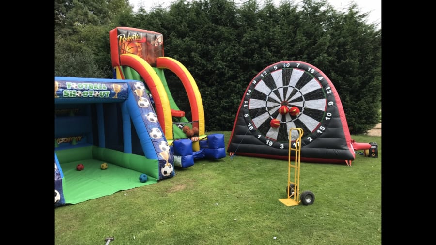 Sports Events Package including 37ft assault course, football shootout, basketball shootout, Inflatable twister, kick darts and gladiator duel for hire in Solihull, Birmingham, Bromsgrove, Redditch, Wythall, Hollywood and surrounding areas