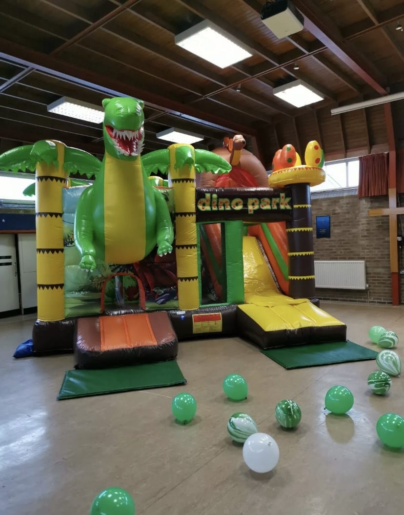 Large Dinosaur Bouncy Castle Activity Park available for hire in Solihull, Birmingham, Bromsgrove, Redditch, Wythall, Hollywood and surrounding areas