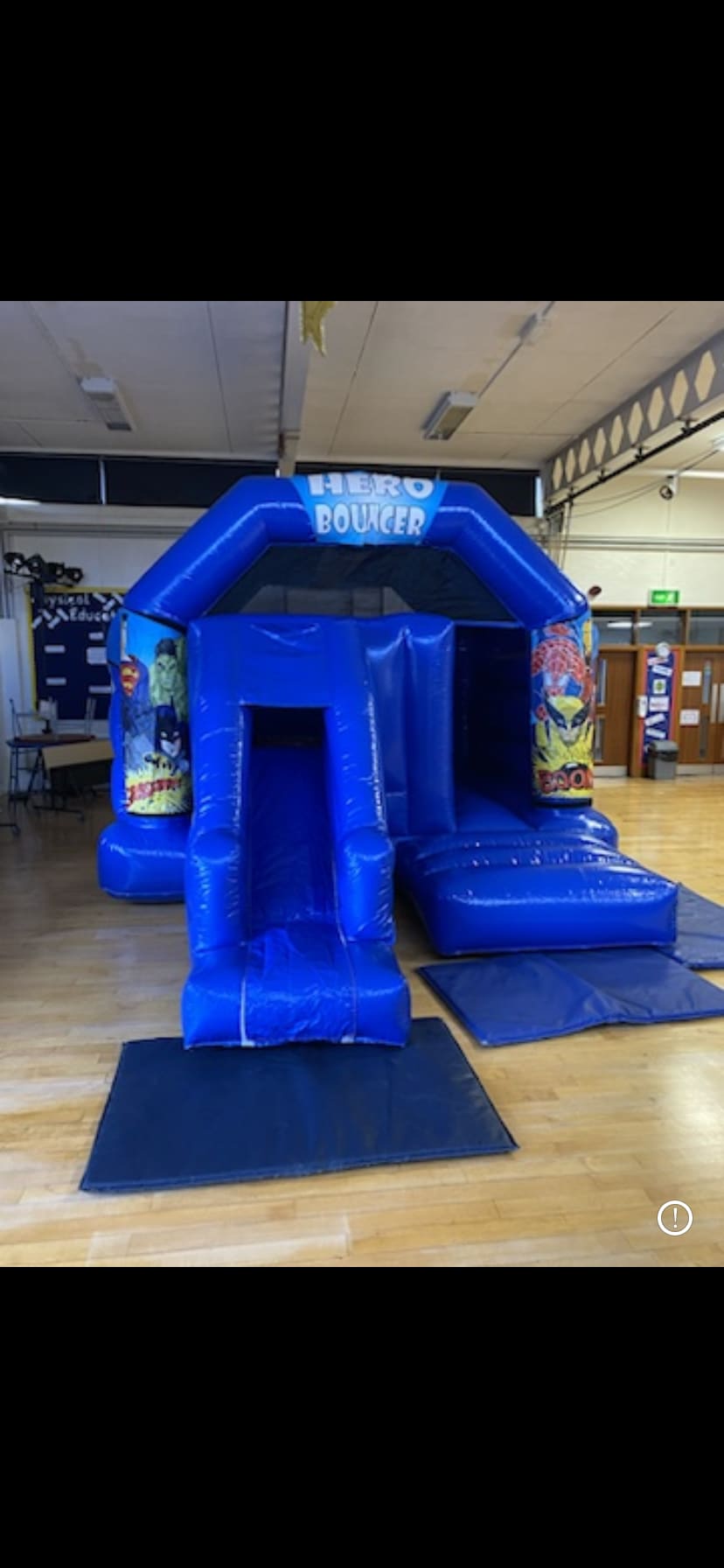 This Superhero themed castle combi is a great addition to any child's party, with its bright bold colours and being unisex it will be loved by both boys and girls of all ages. This product is likely to fit into most sized halls and gardens as it is the same size as our children castles, allowing more space at your venue/ area.