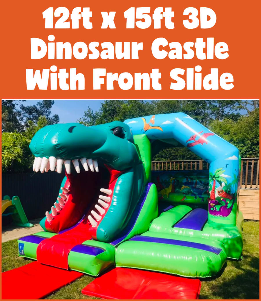 Reserve the 12x15ft Dinosaur 3d bouncy castle with slide today. Create a standout Dinosaur party that kids will talk about for months. Contact us to check availability and package deals. 🦖🎈