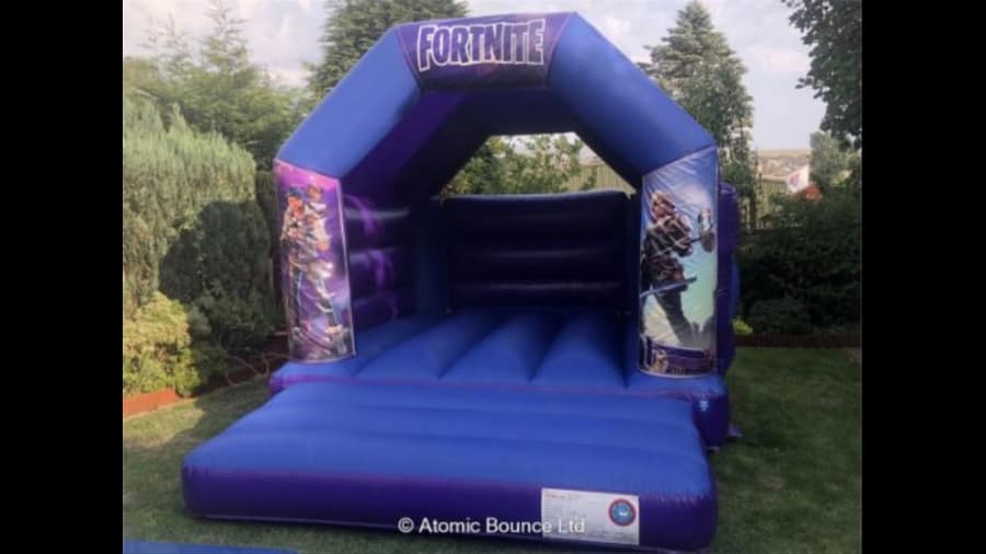Back to Bouncy Castles Fortnite Bouncy castle 11x15 DetailsSuitability Fortnite Bouncy castle for hire in Solihull, Birmingham, Redditch, Bromsgrove, Wythall and surrounding areas Join the big Fortnite craze and have your own Fortnite themed bouncy castle! Maybe even add in a nerf shootout for extra fun! Book online today or Contact UsPrice: £69 Available Overnight for an extra £30 Suitable Indoors on Artificial Grass Indoors on Hard Surface Outdoors on Artificial Grass Outdoors on Grass Outdoors on Grass & Dirt Outdoors on Grass (event) Book OnlineCheck Availability Booking Information Time of assembly/ set up is approx 15-25 mins depending on access etc, so please allow this time when booking Each inflatable Comes with the necessary equipment for a safe booking ie - Mats, Ground stakes, sandbags, Extension leads, Blower Please ensure there is clear space and access for the delivery (We can refuse the hire if these guidelines are not met) We hold insurance cover up to 5 million, PAT tests and safety certs on relevant inflatables and these can be seen when asked for in well advance of the booking Most importantly we are here to help! our main priority is that you enjoy your party and we help all we can to make it run smoothy, thank you for booking or just checking out what we do!
