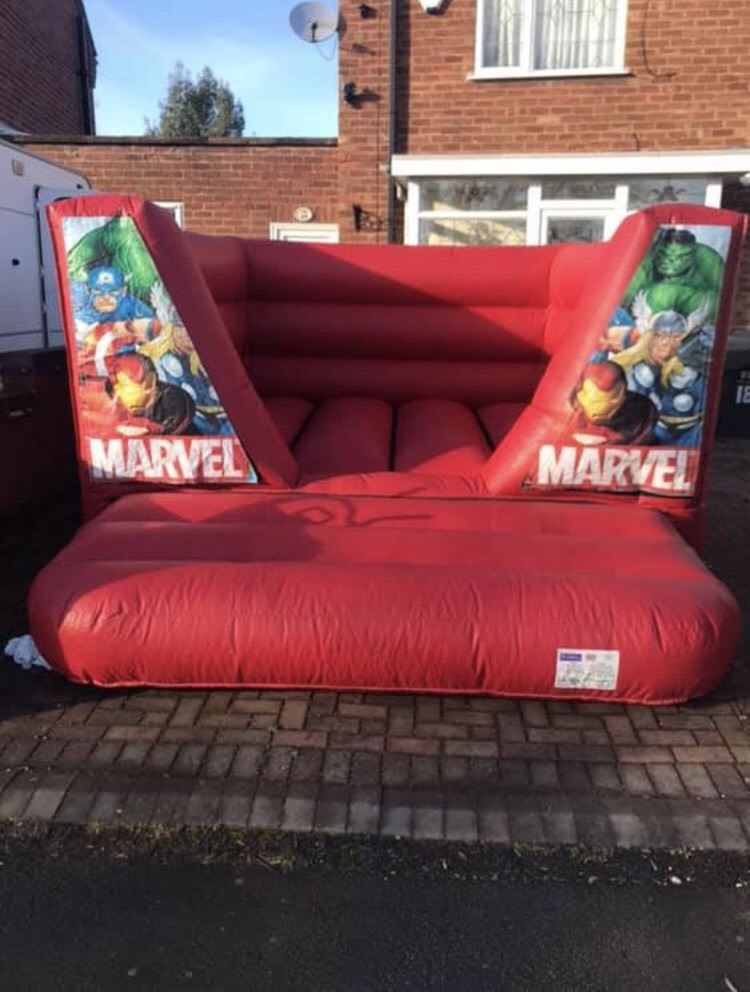 Low height superhero bouncy castle 12x15ft for hire in Solihull, Birmingham, Wythall, Redditch, Bromsgrove and surrounding areas