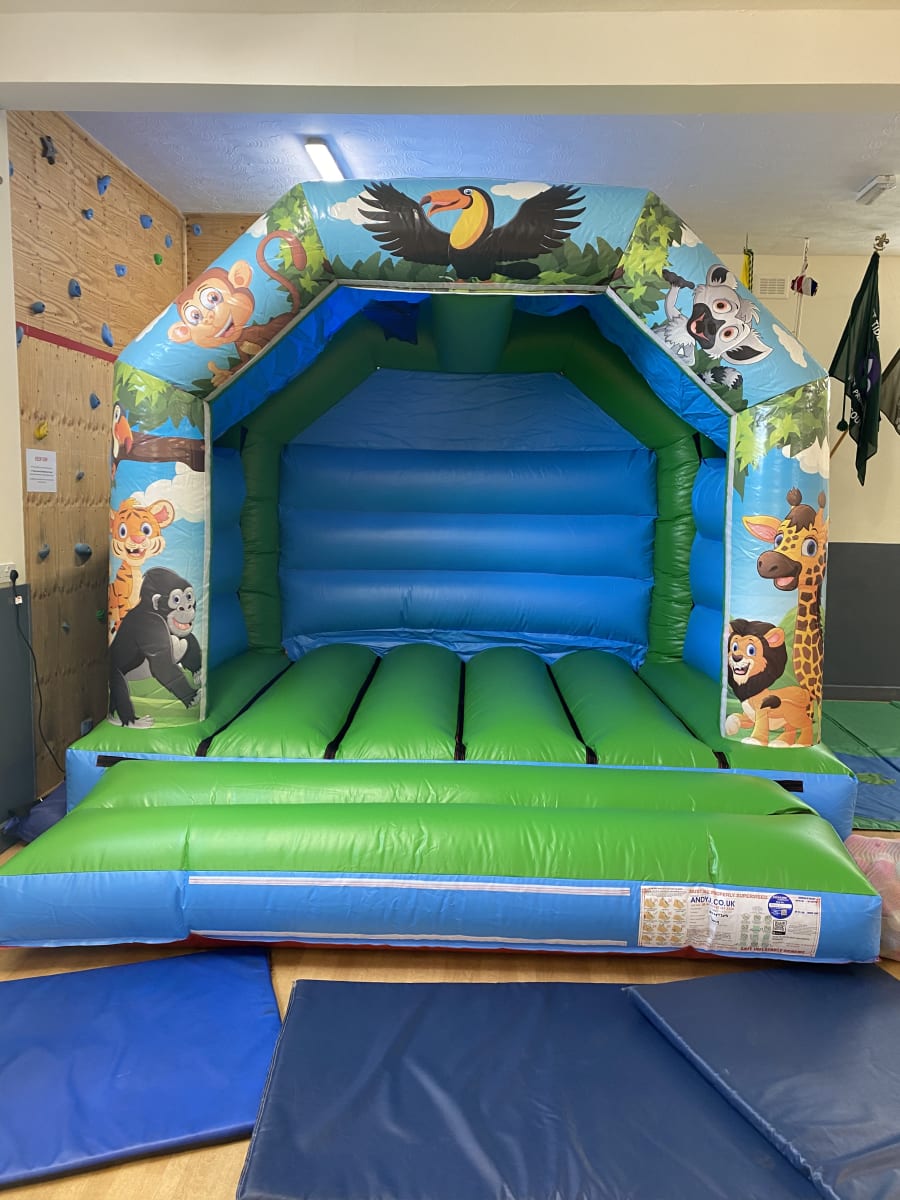 12x12ft Jungle Theme Disco Bouncy castle for Hire in Solihull, Birmingham, Bromsgrove, Redditch, Wythall, Hollywood and surrounding areas