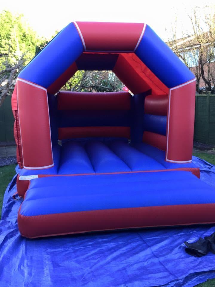11x15 Red and Blue bouncy castle for children, available for indoor and outdoor hire.