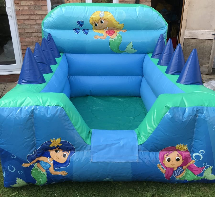 In addition to our always popular Mermaid bouncy castles and Mermaid softplay we have now added a Mermaid ball pit to the fleet! This measures at 8x8ft and has air jugglers so the balls float swell for extra sensory fun!!