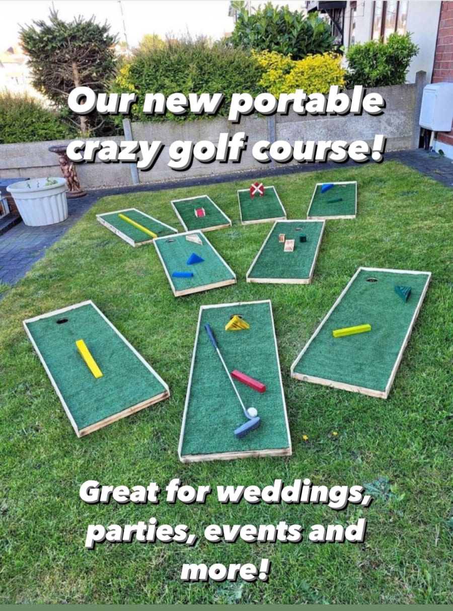 Back to Wedding & Event Supplies Crazy golf 9 hole DetailsSuitability Crazy golf - 9 hole hire for weddings, parties and events ⛳🎉 Crazy golf hire Crazy golf 9 hole in Solihull, Wythall, Bromsgrove, Birmingham, Redditch, Warwick, Balsall common. A compact, fun and fully portable 9 hole crazy golf course. Ideal for wedding receptions, corporate party hire and community events. Quick to set up. Great for players of all ages. Book memorable entertainment that keeps guests talking. 🏌️♀️🥳 Why choose Crazy golf 9 hole? Ready-made 9 hole layout for fast play and maximum fun. ⏱️ Perfect for Wedding golf hire — adds unique photo moments and relaxed competition. 💍📸 Great for Corporate party hire — team play, prizes and branded scorecards available. 🏆 Safe, family-friendly design suitable for all ages. 👨👩👧👦 Professional delivery and setup across the West Midlands. 🚚 What’s included 9 portable holes with obstacles and themed features. All putters, balls and scorecards provided. Full delivery, setup and breakdown by our crew. Optional staff for event management and mini-tournaments. Best for Weddings looking for unique reception activities — Wedding golf hire. 💒 Companies planning team building or office parties — Corporate party hire. 🏢 Local fetes, festivals and private garden parties. 🌳 Golf enthusiasts wanting a fun social challenge. ⛳ Service areas We deliver Crazy golf 9 hole across Solihull, Wythall, Bromsgrove, Birmingham, Redditch, Warwick and Balsall common. Fast quotes. Flexible time slots. Local, reliable and experienced event support. 📍 Book now Reserve your Crazy golf - 9 hole hire today. Increase guest engagement. Create lasting memories. Contact us for availability, pricing and bespoke packages. ✉️📞 Original Price: £120Special Offer: £100 1 day2 days3 days £100£130£180 Available Overnight for an extra £30 Suitable Indoors on Artificial Grass Indoors on Hard Surface Outdoors on Artificial Grass Outdoors on Grass Outdoors on Grass & Dirt Outdoors on Grass (event) Book OnlineCheck Availability