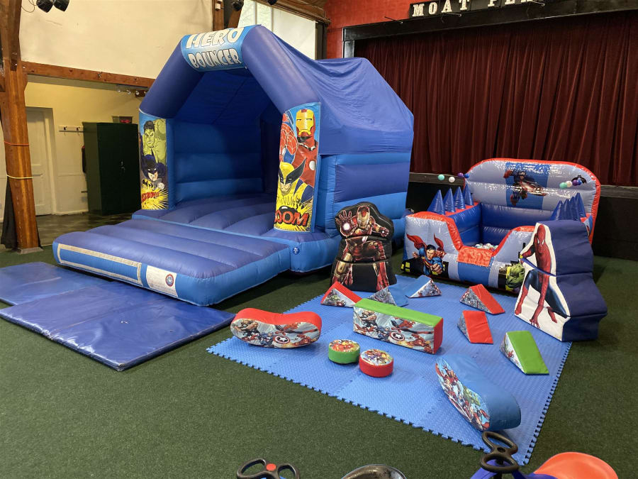 Back to Party Packages Ultimate Superhero Package Ultimate Superhero Bouncy castle Package available for hire in Wythall, Hollywood, Solihull, Bromsgrove, Redditch and surrounding areas Whether your a fan of iron man, the hulk, Spiderman or Batman, we have an amazing superhero package to suit your needs! Package includes- 11x15 ft superhero bouncy castle (can be changed for low height if required) 8x8 ft superhero inflatable ballpit with floating balls soft play including stand up build an ion man and Spiderman matted area 4 didicars Book this package today online!!Contact UsPrice: £159 Book OnlineCheck Availability