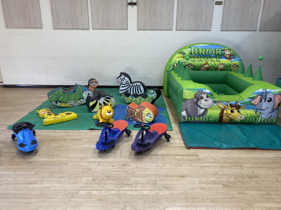 In addition to our fantastic range of toddler packages in jungle theme we have put together this great package for you. For those who have less room but also have older children requiring a larger castle we have the Big jungle package, this includes a 12x15ft(11.5ft height) jungle bouncy castle with slide fitted for extra entertainment, our 8x6 ft jungle ballpit with air jugglers and a selection of jungle soft play with mats and we have also thrown in a set of didicars!